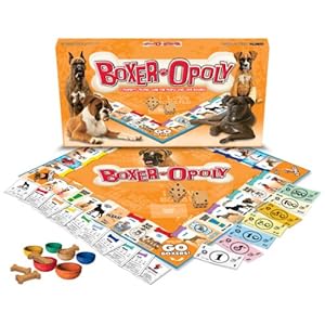 BRAVE, COURAGEOUS, LOYAL, FUN-LOVING CLOWN MEET THE BOXER.A Boxer is all that is good in a dog. Developed in the late 19th century in Germany to act as a guard and companion, the Boxer has carried these traits admirably through its history. While they are certainly boisterous by nature, their intelligence is up there with the best of them. They fit easily into family life and thrive on being one of the pack. Devoted and fearless, Boxers have an endless capacity to give love.Increase your rent by buying Toys for your dogs and upgrading them to Big Bones. Sounds easy enough until you get fleas, have an accident on the carpet, or worse yet, get sent to the kennel. So grab your token and advance to go Boxers. Who knows. You may soon be Best in Show or marching in the Dog Parade. Whatever happens, keep your wag on.For 2 - 6 players, ages 8 and up. Includes directions for traditional play and for the one hour version as well.