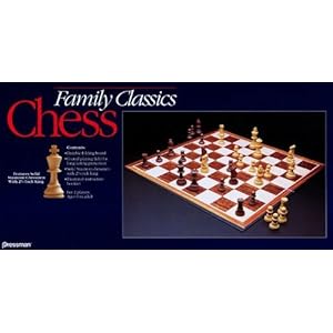 Chess: Family Classics Edition. Features heavy-duty folding board, solid Staunton chess pieces with a 2.63" King and rules. For 2 players, ages 8 to adult.