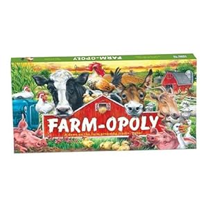 The Farm-Opoly is a property trading game for farmers or those who just think farming is cool. It's life down on the farm where players increase their profit by collecting acres and trading them in for big red barns. Full of country humor and an occasional fun fact, farm-opoly is a celebration of an All-American way of life.