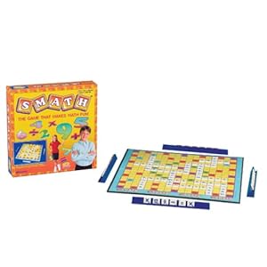 Practice makes perfect in the world of math, but practice is more fun when it's a game instead of homework. The rules of this board game resemble those in Scrabble, but Smath is played by creating math equations instead of words. The game includes a playing board and lots of tiny tiles with numbers, signs for math operations, and brackets to create more complex equations, which players can place on the board horizontally or vertically. The game can be played at different levels of difficulty, from simple addition problems to equations combining operations (for example, (2)(2 + 3) = 5 x 2). The game is for two to four players at different levels of math proficiency, making this an educational (but still entertaining) game for the entire family, the classroom, or for home schoolers. --Marcie Bovetz